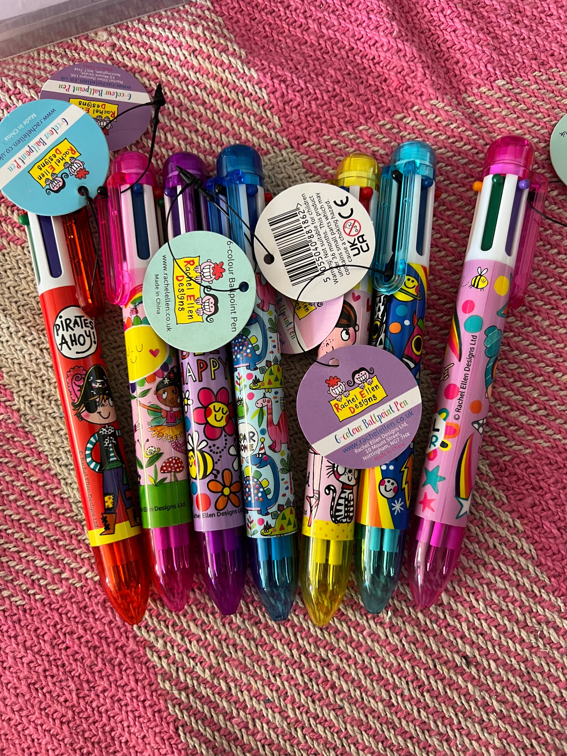 Ballpoint pen with 6 different colours. Comes in seven different designs.