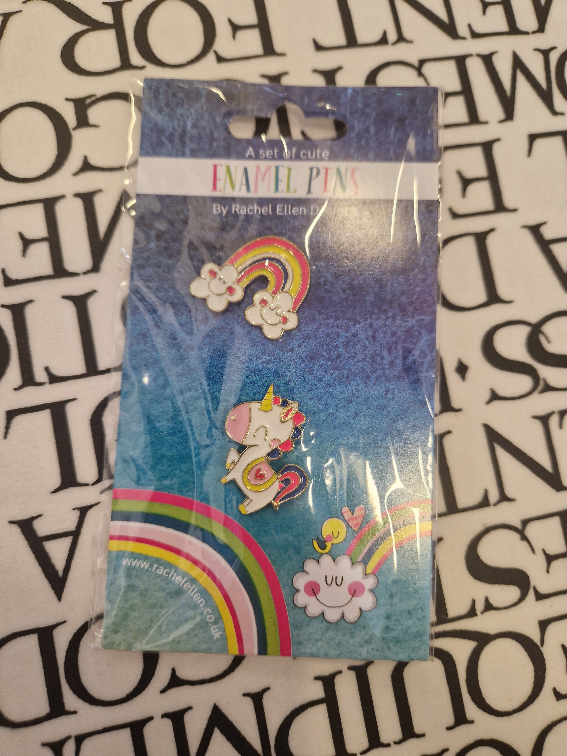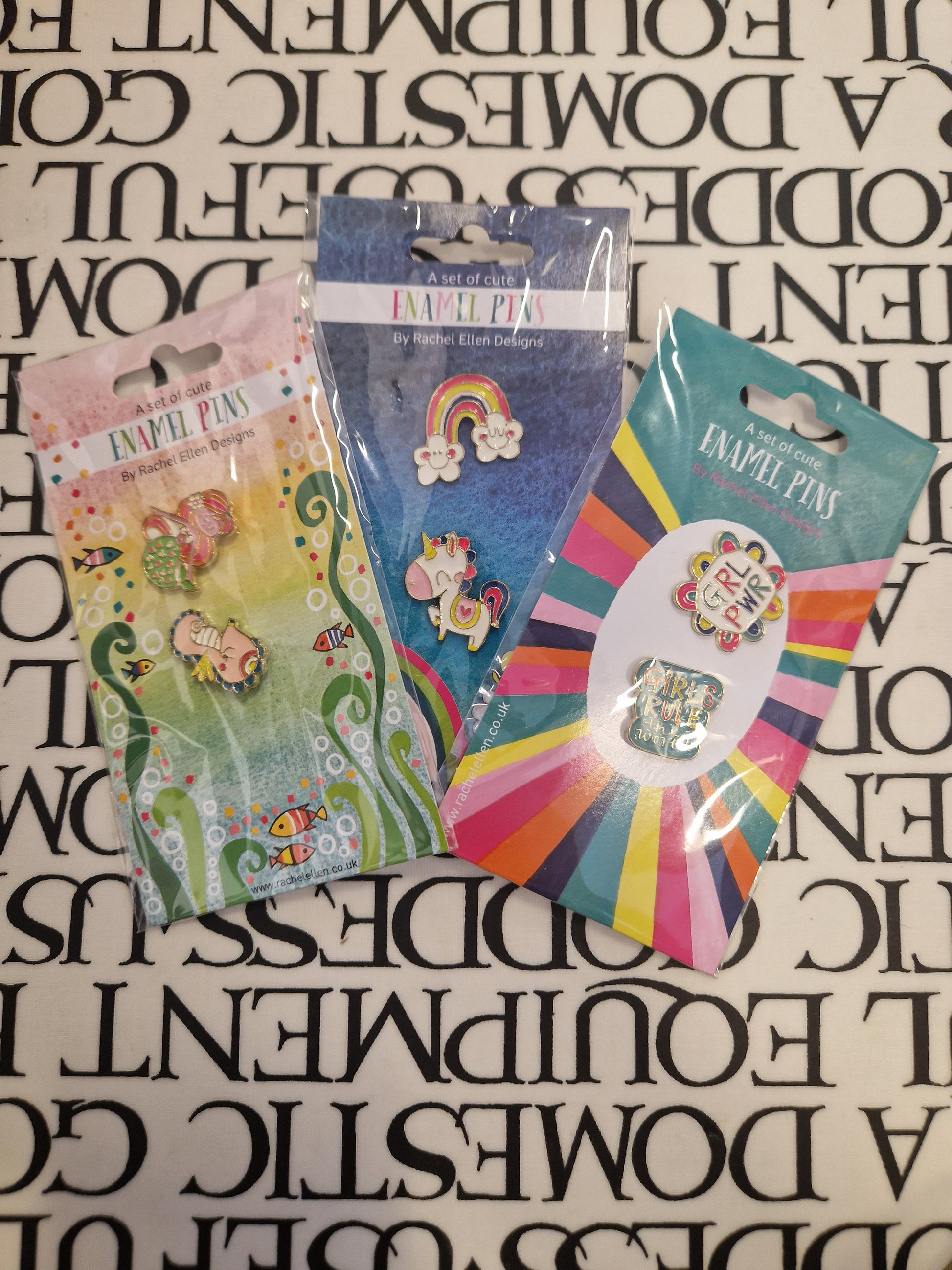 Two-pack of enamel pins by Rachel Ellen, with 3 different designs to choose from.