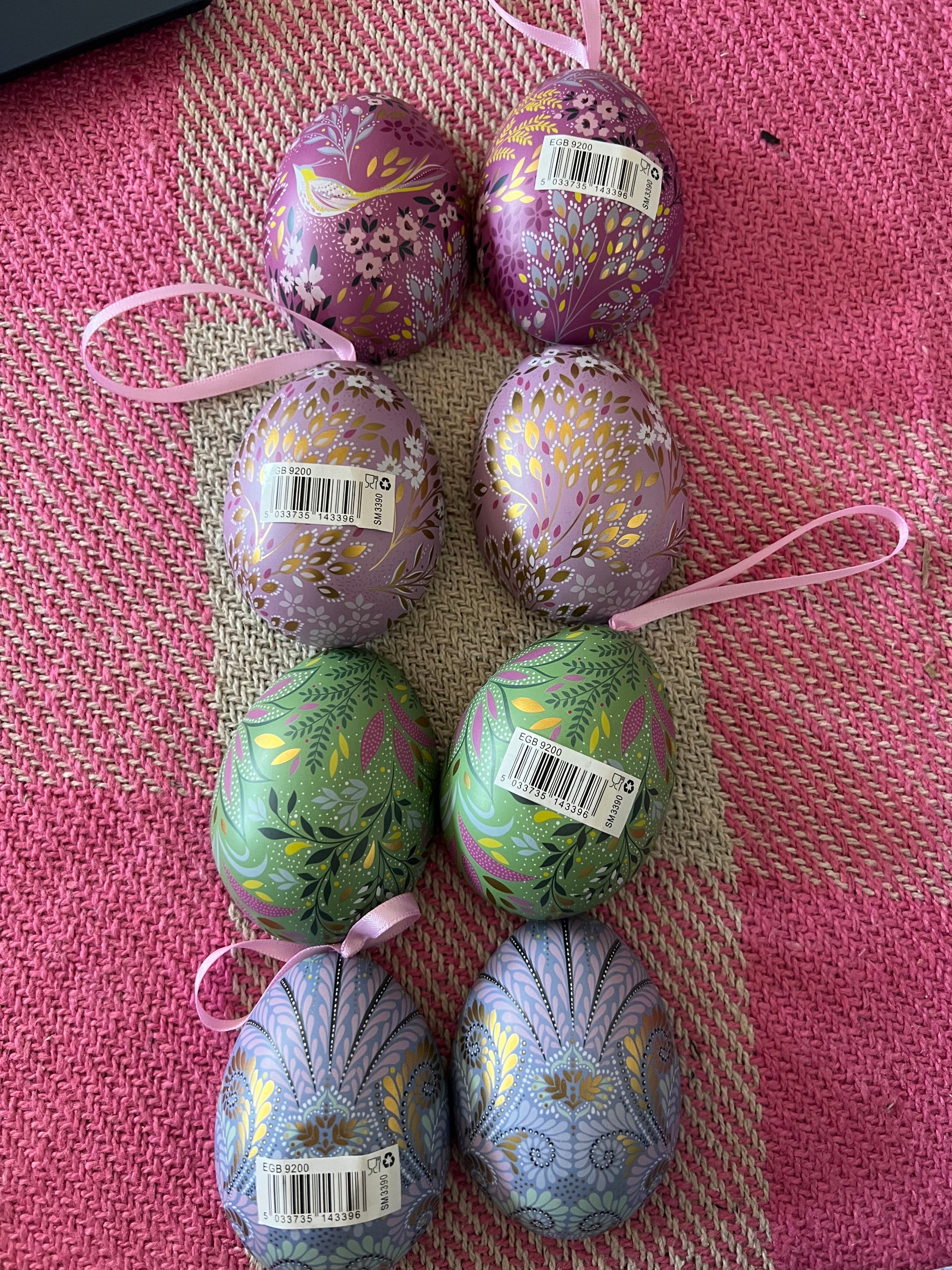 Small hanging easter eggs which split in half for storing easter treats inside, available in 4 different designs