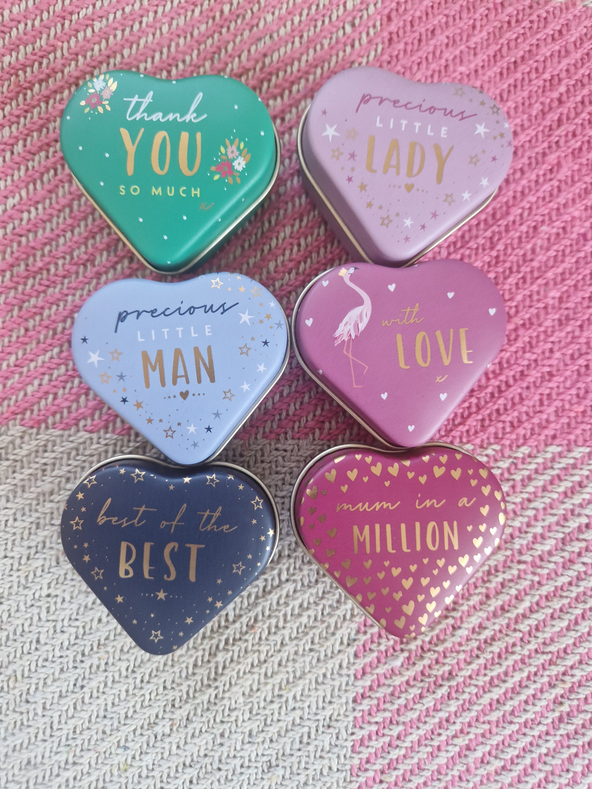 Small heart pocket tin, available in 5 different designs. Useful for medication and earrings