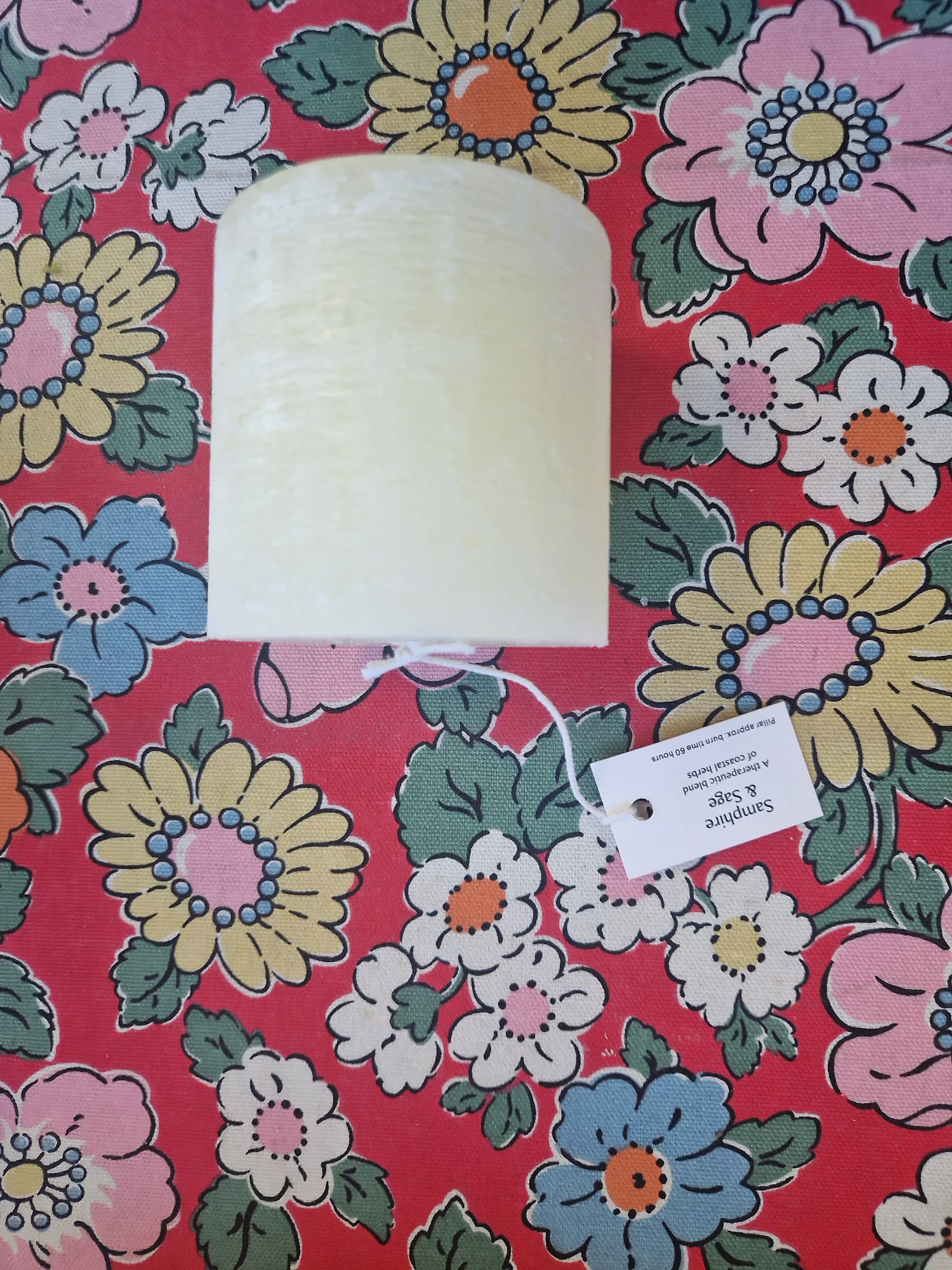 Medium-sized pillar candle with a burn time of up to 60 hours.